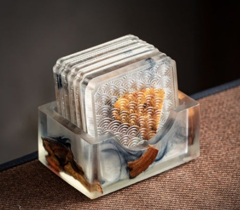 Creative Handmade Pine Resin Coasters – Japanese Style (Set of 4)