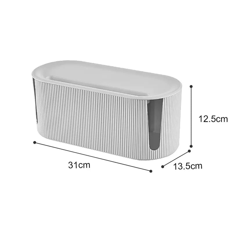 Desktop Dust-Proof Power Strip & Cable Organizer Box (12.2" × 5.3" × 4.9")