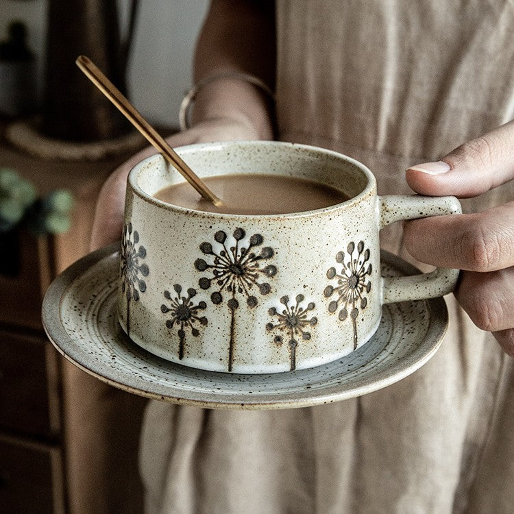 Japanese Coarse Pottery Coffee Cup & Plate Set