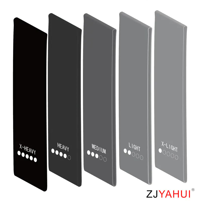 5 × latex mini-loop bands (Light → XX-Heavy)